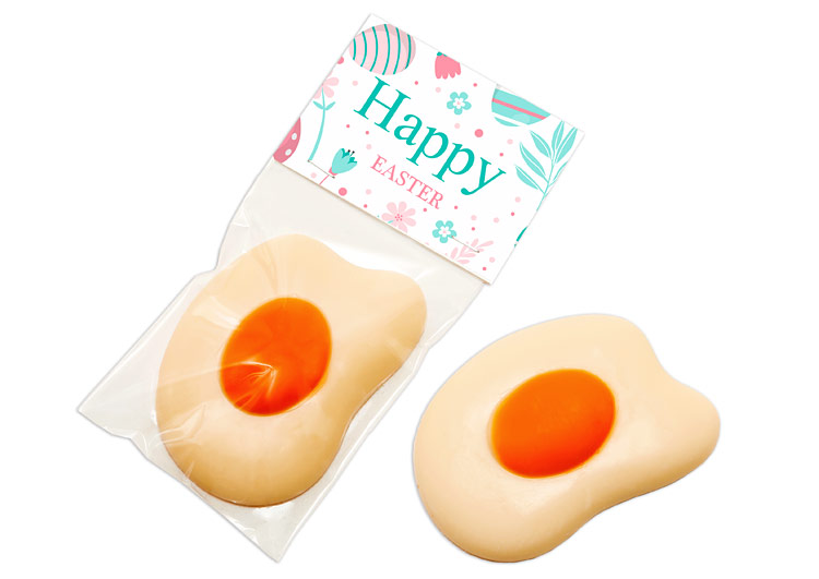 - small fried eggs created using white and orange flavoured Belgian chocolate