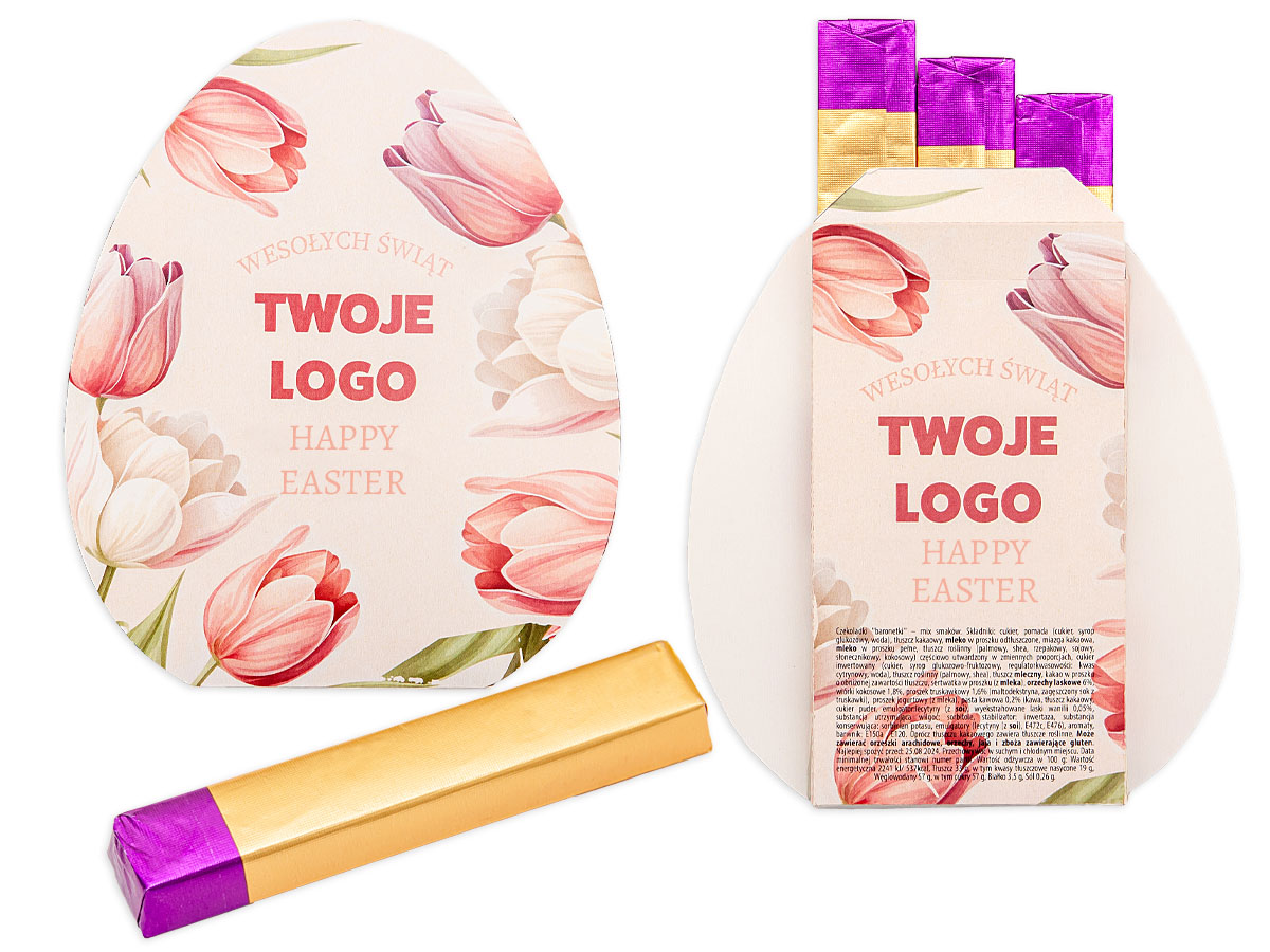 - chocolates packed in a Easter-egg-shaped box with promotional print – CMYK