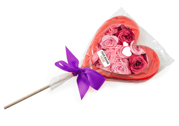 Large, heart-shaped lollipops