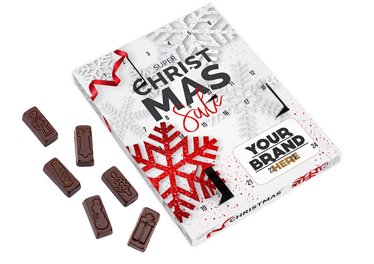 - cardboard box with with 24 small door for removal of individual chocolate pieces