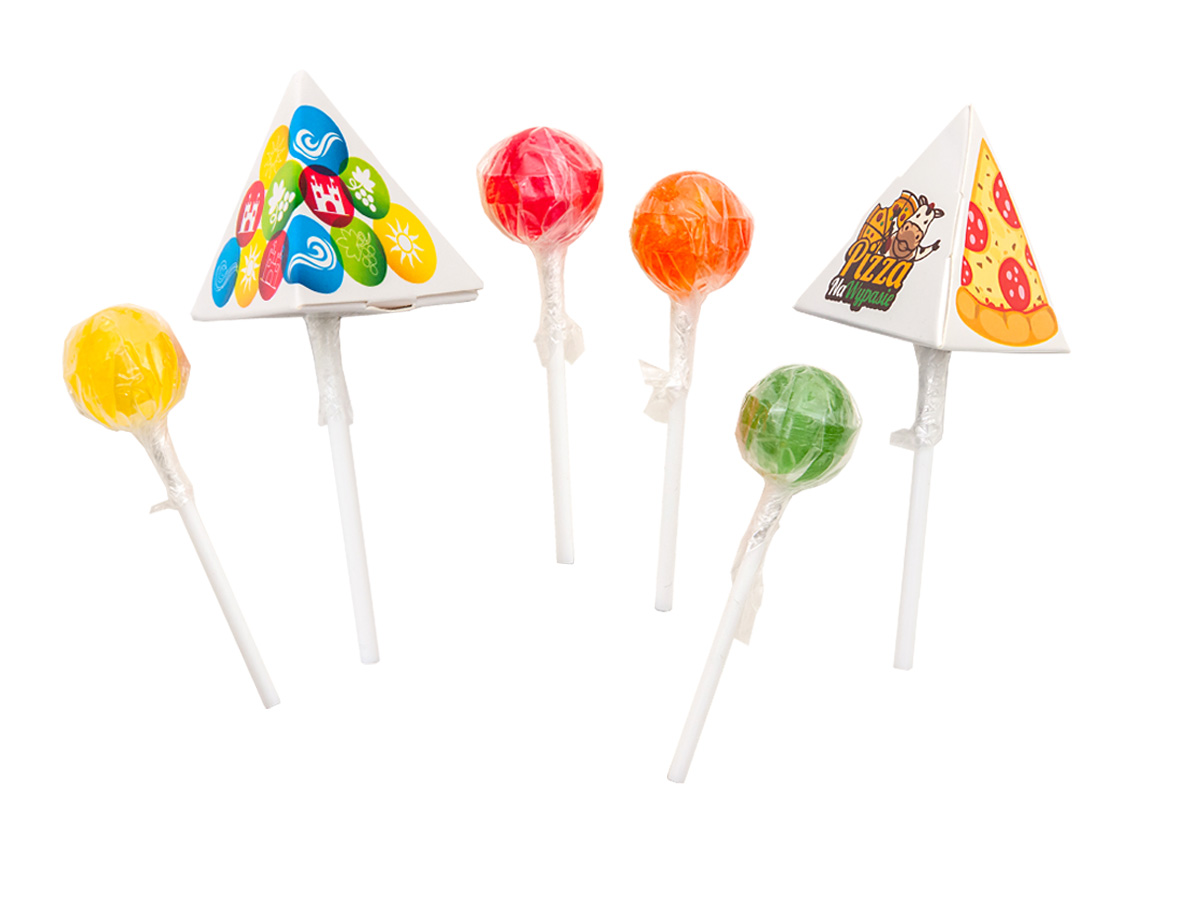 - packed in pyramid-shaped cardboard boxes with CMYK or 1-4 Pantone promotional print