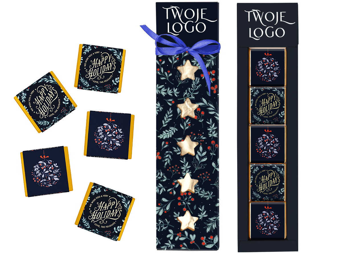 - chocolates with promotional print (CMYK) on wrappers, also available without wrappers (in foil only)