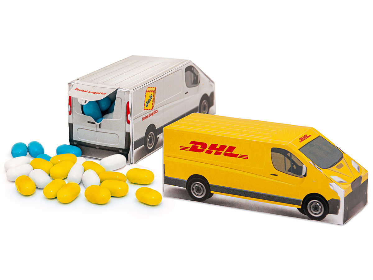 • cardboard box in the shape of 3D van