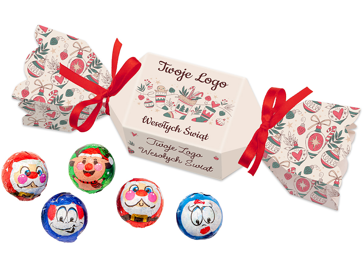 - intrygujący cukierek wypełniony czekoladowymi pralinkami