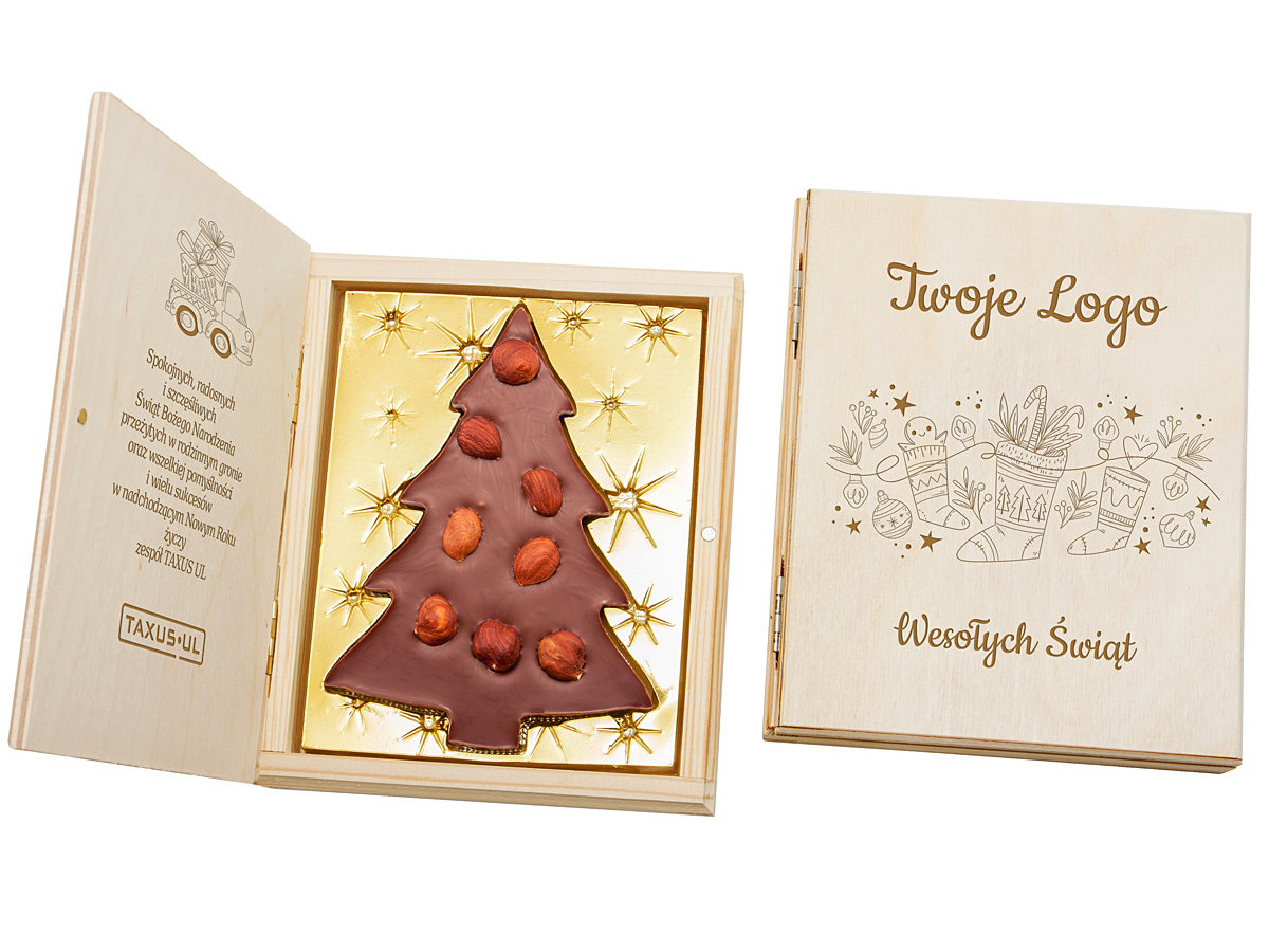 • laserowo wygrawerowane logo, życzenia świąteczne lub motywy graficzne, zarówno po zewnętrznej jak i po wewnętrznej stronie pokrywy opakowania