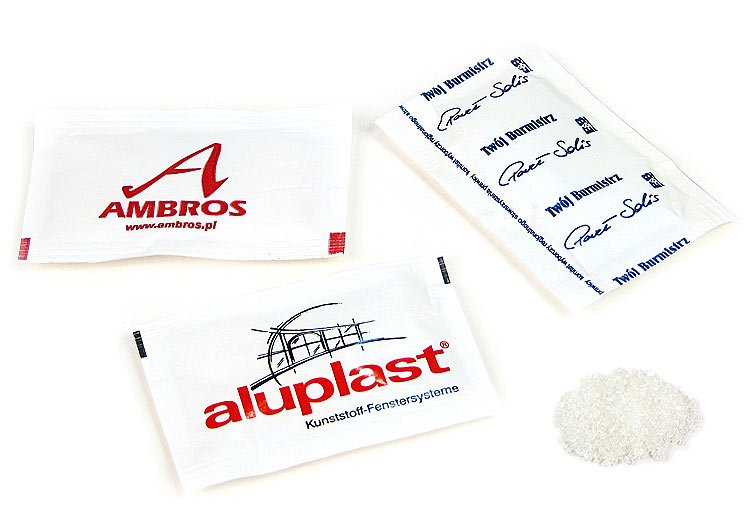 Cukier w saszetkach z logo biały lub brązowy (na zapytanie) .