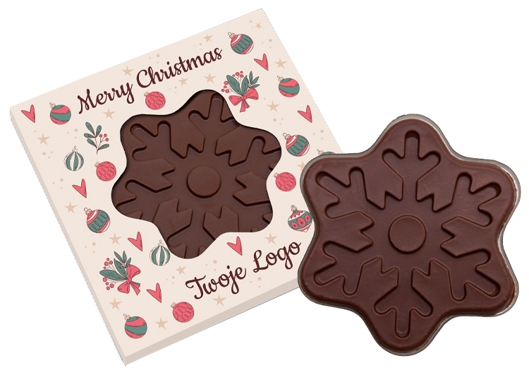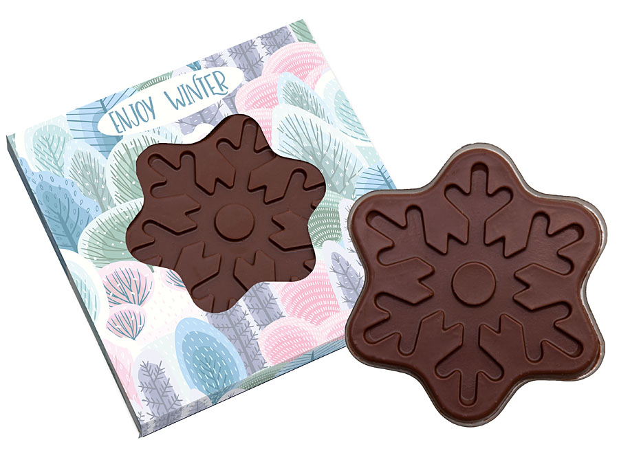 • czekolada w kształcie śnieżynki o kilku smakach i kolorach: mleczna, deserowa, gorzka i biała (za niewielką dopłatą)