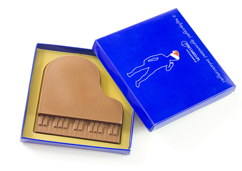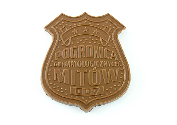 Niepowtarzalne czekoladki w dowolnym kształcie lub prostym motywem graficznym wyłoczonym bezpośrednio na powierzchni czekolady.
