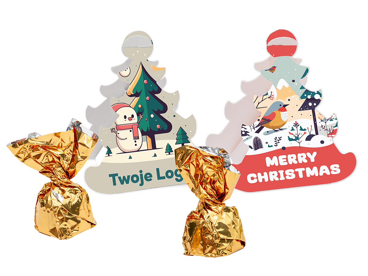- pakowane pojedynczo w opakowania kartonowe w kształcie choinki