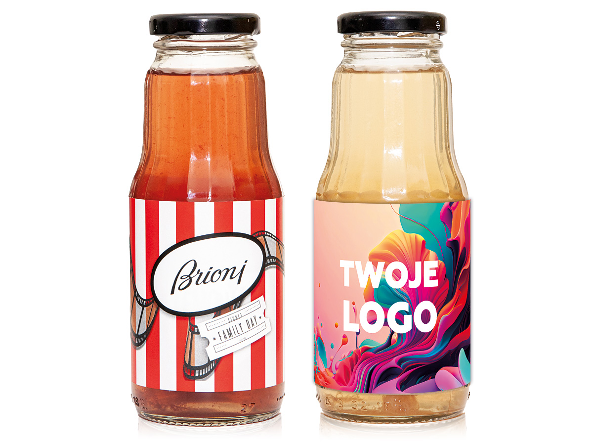 miód + agrest - szklana butelka oklejona etykietą reklamową z dowolnym nadrukiem CMYK