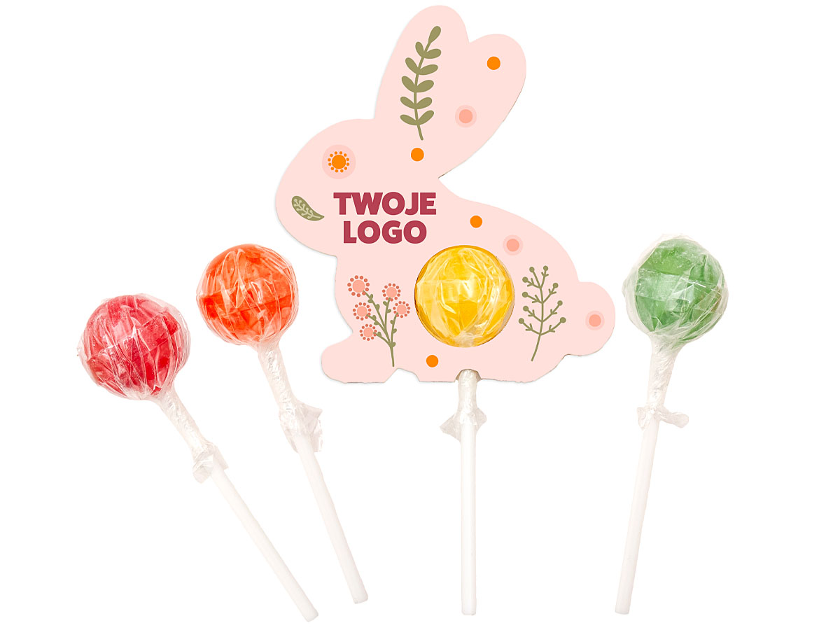 - dwustronny kartonowy króliczek z dowolnym nadrukiem reklamowym CMYK