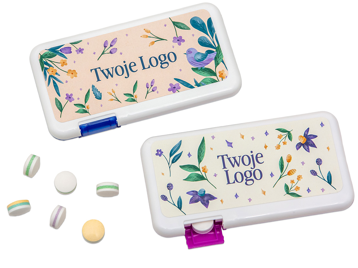 - 30 wysokiej jakości odświeżających pastylek bez cukru w plastikowym pudełeczku przypominającym wizytówkę