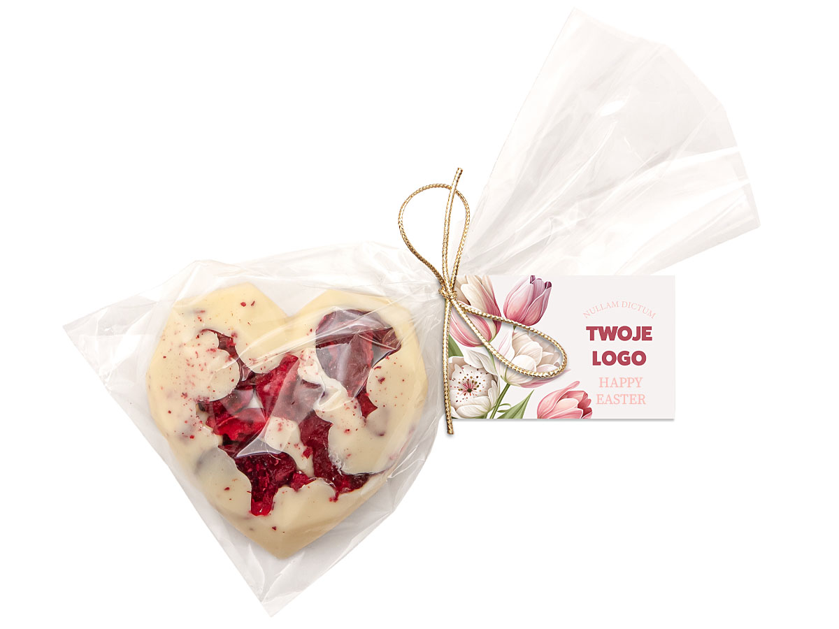 - do wyboru: czekolada biała z liofilizowaną wiśnią lub czekolada mleczna 44% z migdałami oraz liofilizowanymi truskawkami