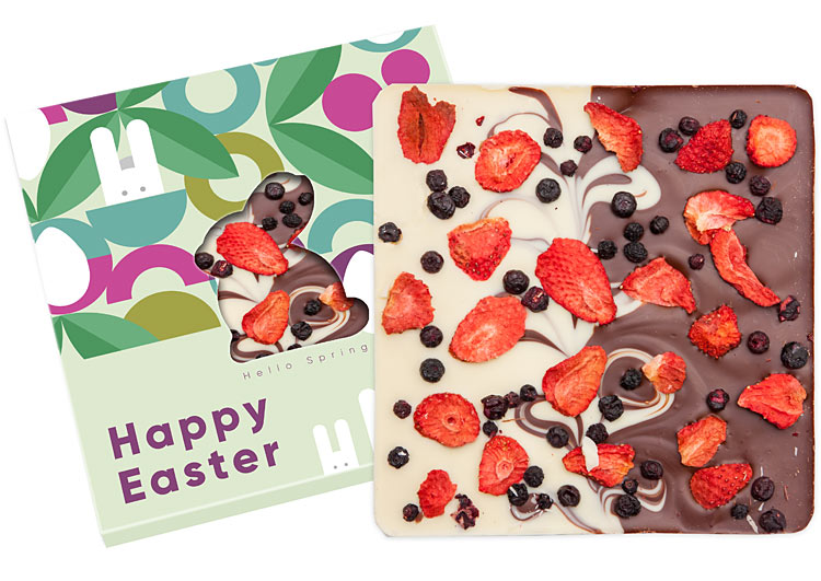 Znakomite, ręcznie produkowane czekolady z zatopionymi różnorodnymi kompozycjami owoców liofilizowanych