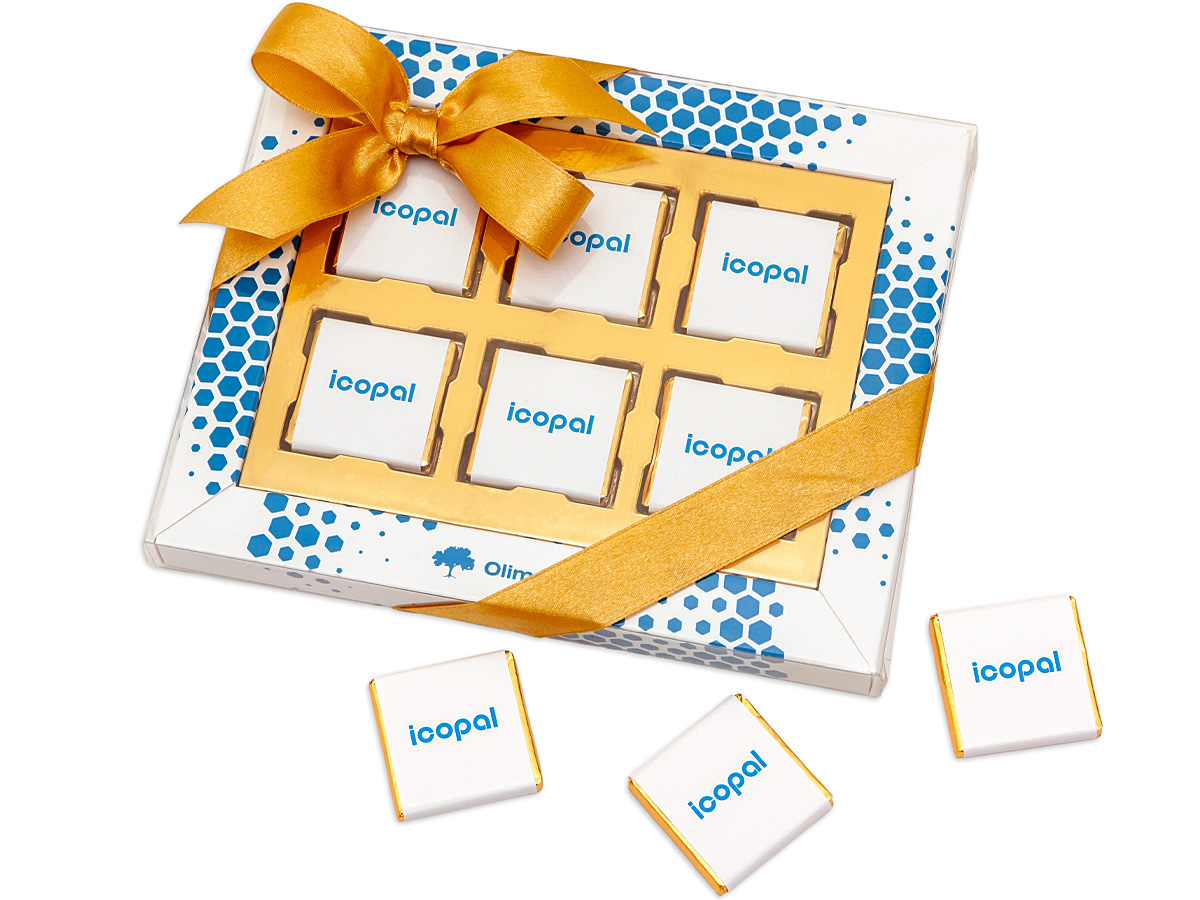 - do wyboru czekoladki mleczne (złoty, srebrny laminat) lub deserowe (złoty laminat)