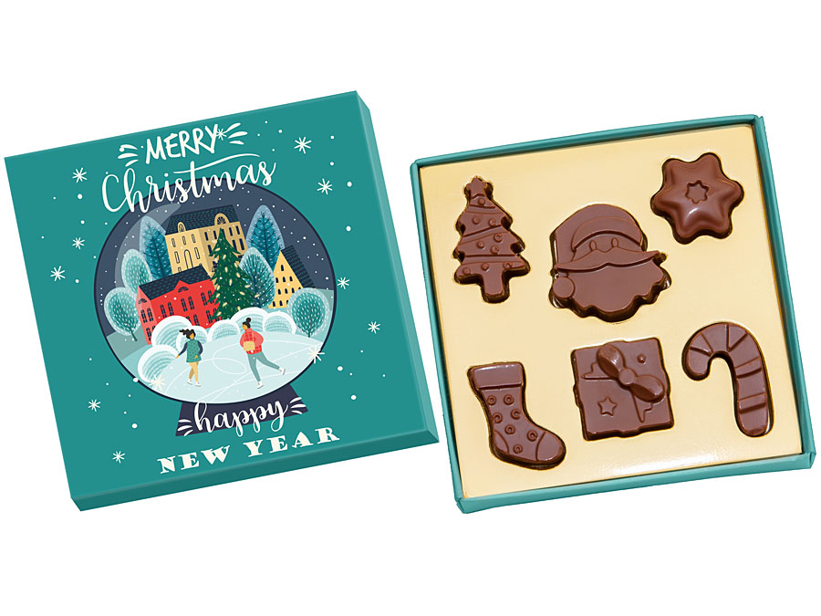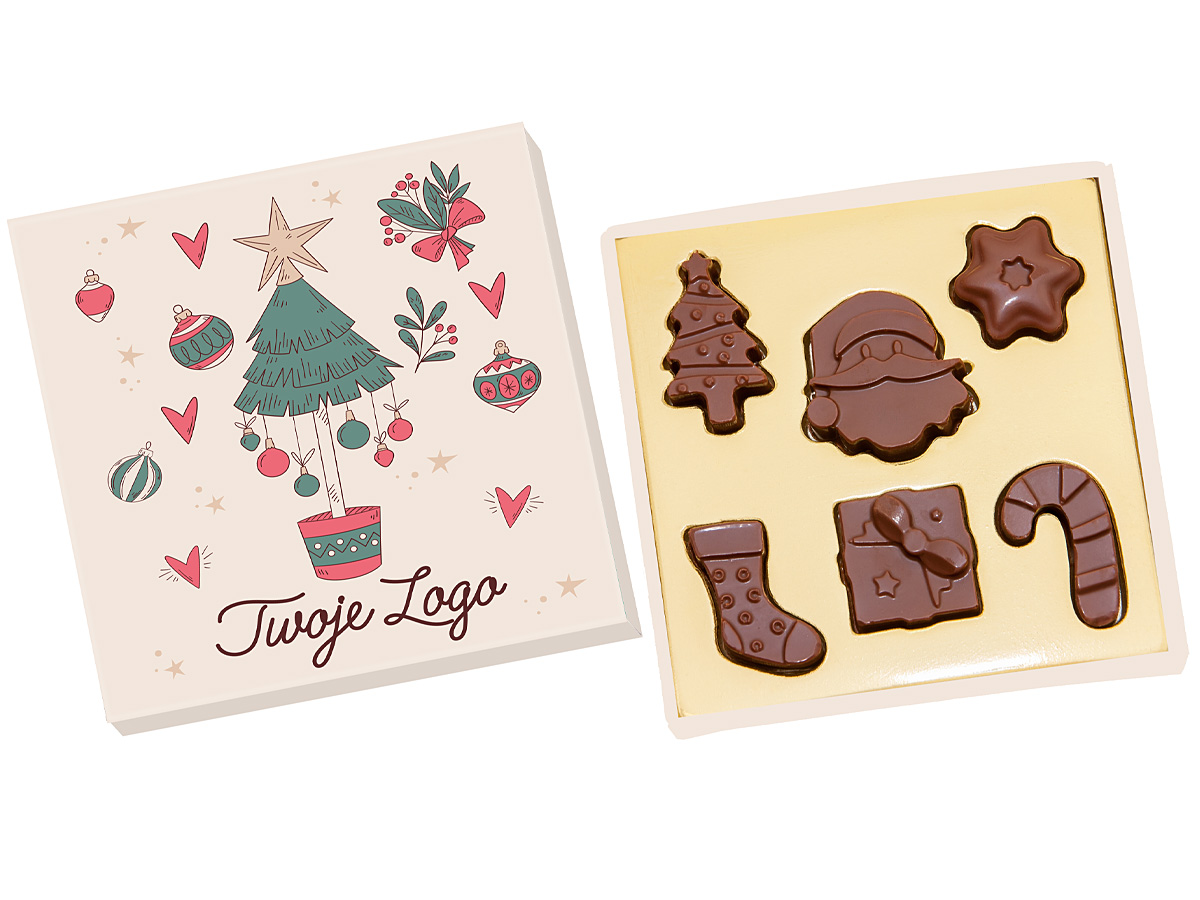 • Zestaw Mikołajkowy to uroczy upominek na Boże Narodzenie, składający się z 6 czekoladek w kształcie głowy Mikołaja, choinki, gwiazdy, laski, skarpety i oczywiście prezentu …