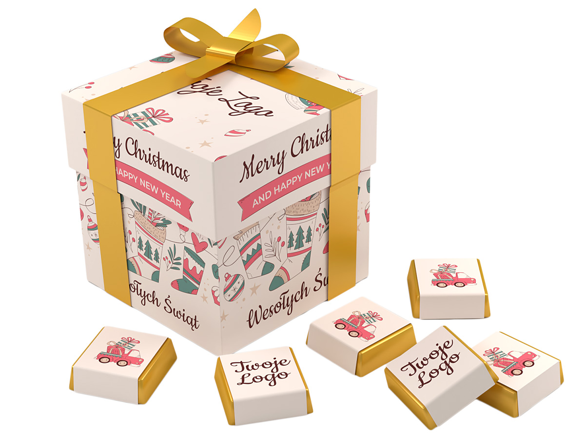 • jeden wybrany smak czekoladek lub mix dostępnych smaków: czekoladowy, pistacjowy